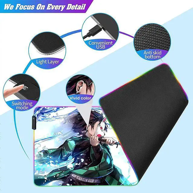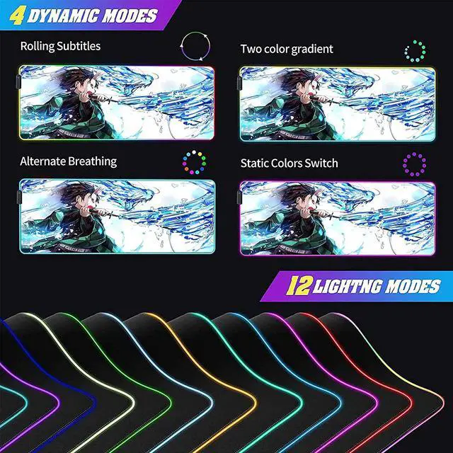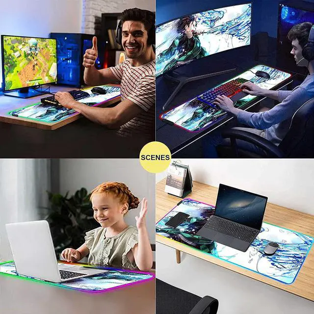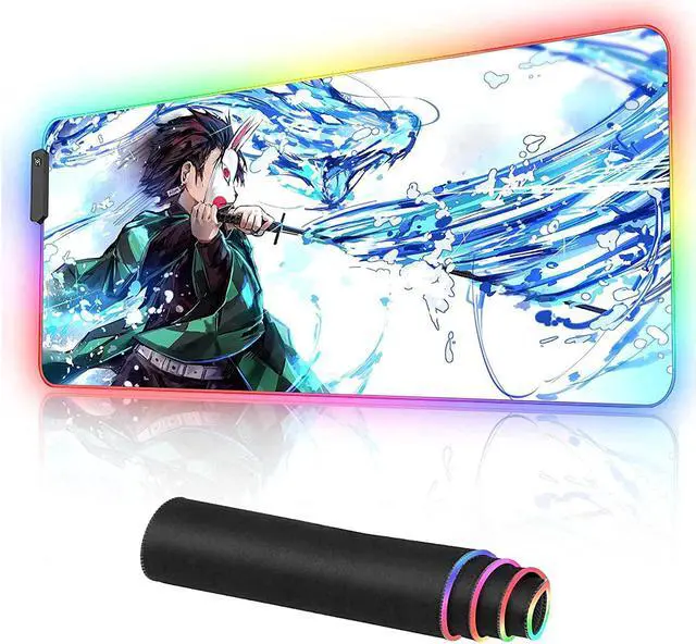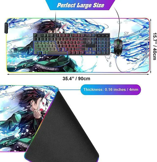 Anime Mouse Pad RGB Tanjirou Sword,Extra Large Mousepad Full Size Laptop Desk Mat,12 Lighting Modes,Non-Slip Rubber Base,Soft,Smooth Fabric Design,Computer Keyboard & Mice Combo Pads 35.4x15.7