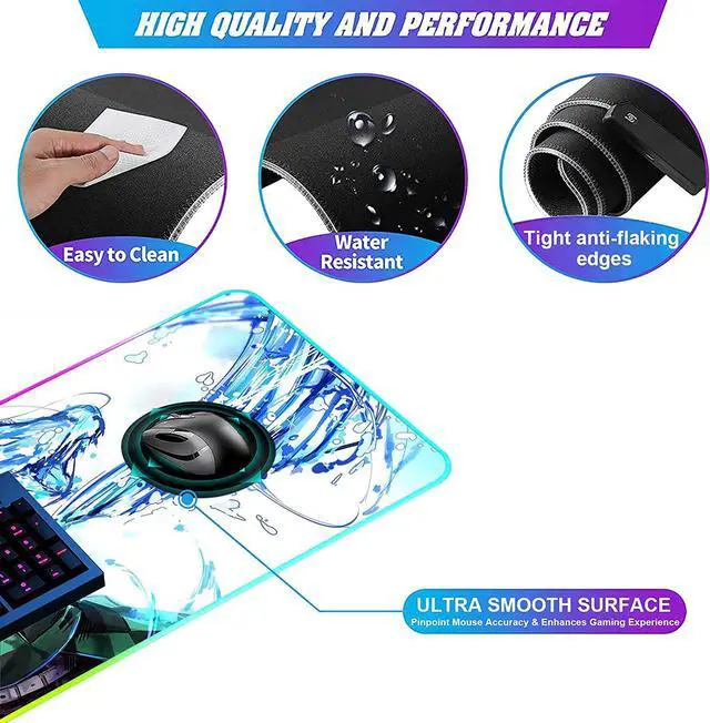 • ???EXTRA LARGE SIZE AND MULTI-PURPOSE?Measure Size is 35.4x15.7 Inches / 900x400 mm. This RGB Cool Desk Pads is Perfect For Office, Gaming, Learning, Desktops, Laptop, Personal Computers, Consoles, Mechanical Keyboard, Mini Keyboards And Mice.