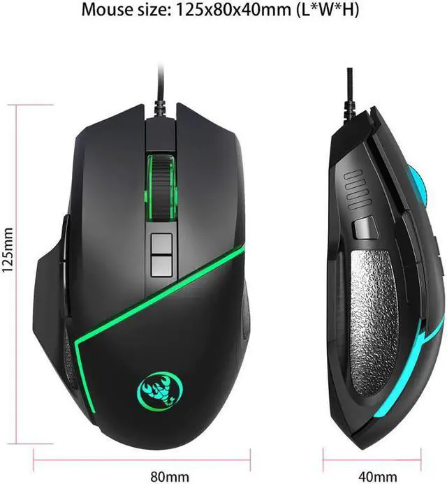 Mouse Gaming Ergonomic Wired Game Mouse 6400 DPI USB Gamer Mice Silent with 7 LED Backlight for PC LaptopFeature: 1. Chipset: Sunplus 195+MCU IC have memory 2. Lights off and onMid button+ DPI Loop + 3. Light mode: 7-color synchronous breathing light. 4.A195 Sensor can be set DPI resolution up to 6400DPI (800/1600/3200/6400). 5.Large and comfortable Mouse Wheel design.