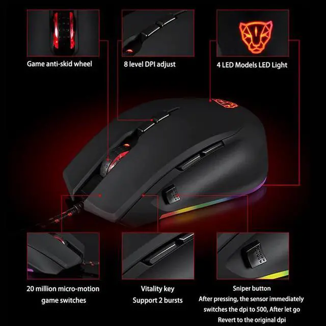 500/800/1000/1500/2000/3000/4000/5000 8-speed dpi adjust, the led will change along with dpi