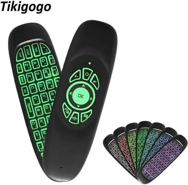 C120 Backlight 7 colors 2.4G Gyroscope air mouse Rechargeable Wireless remote control mini Keyboard for Android TV Box Windows Computer Laptop etc.