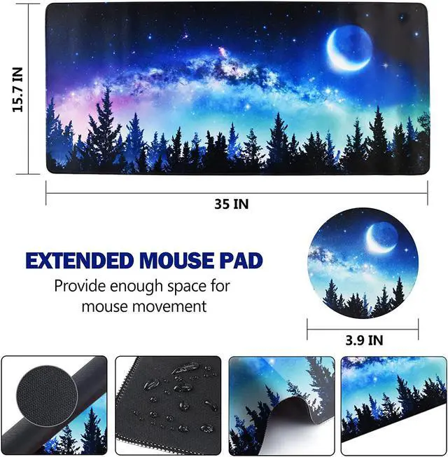 Large and Extended Size. The size of this mouse pad is 35 15.75 inch which is large enough to fit your keyboard mouse laptop phone tablet and other item on the desk keep your desktop layout simpler and clearer. Besides this mouse mat can also be used as a desk pad writing pad. Durable Stitched Edges. The large gaming mouse pad is designed with high stretch silk precision locking edges to avoid wear deformation and degumming in prolonged use. And the edge seams at the edge are flat no discomfort to your wrists and hands.