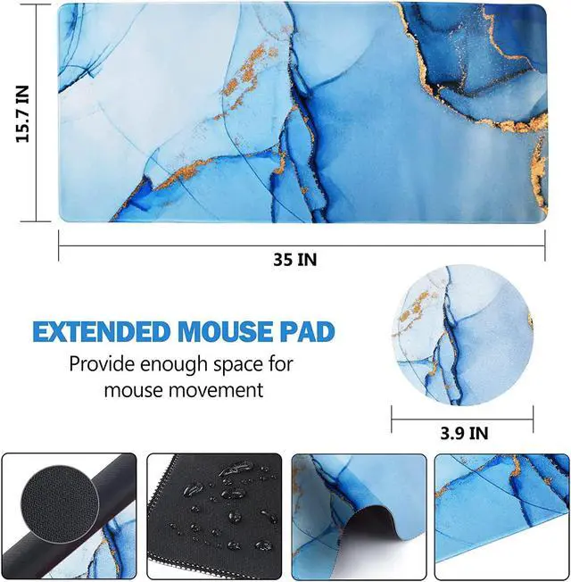 Large and Extended Size. The size of this mouse pad is 35 15.75 inch which is large enough to fit your keyboard mouse laptop phone tablet and other item on the desk keep your desktop layout simpler and clearer. Besides this mouse mat can also be used as a desk pad writing pad. Durable Stitched Edges. The large gaming mouse pad is designed with high stretch silk precision locking edges to avoid wear deformation and degumming in prolonged use. And the edge seams at the edge are flat no discomfort to your wrists and hands.