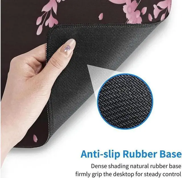 Large Mouse Pad SizeLarge cherry blossom marble desk mat's measure: 31.5 x 11.8 inch and perfect size. This pink floral mouse pad are large enough to fit your mouse gaming keyboard and other desk items while maintaining protecting your desk all the time. Just immerse into your work or games without worrying about the annoying mouse pad movement. Smooth SurfaceThe Ultra-smooth surface of black background flower printed mouse pad provides optimum speed and accurate control effortlessly while playing games. Extended flower pink gaming mouse pad gives excellent experience while you surfing the web working in the office and so on. Non-slip & Rubber BaseWith rubberized non-slip grip and texture the pink Tokyo sakura mousepads can let you move your mouse on any surface at random. While sturdy it's flexible enough to be rolled up for easy transport to move around so you can work or game wherever you want. The rubber base keeps the entire table in place and prevents the flower cherry blossom keyboard mat from moving or sliding so as to keep the mouse moving smoothly over the entire table. Water-resistant CoatingThe surface of floral light pink computer gaming desk mat use high quality waterproof material to effectively prevent water coffee juice and other liquids spill or other accidents caused by accidental damage.