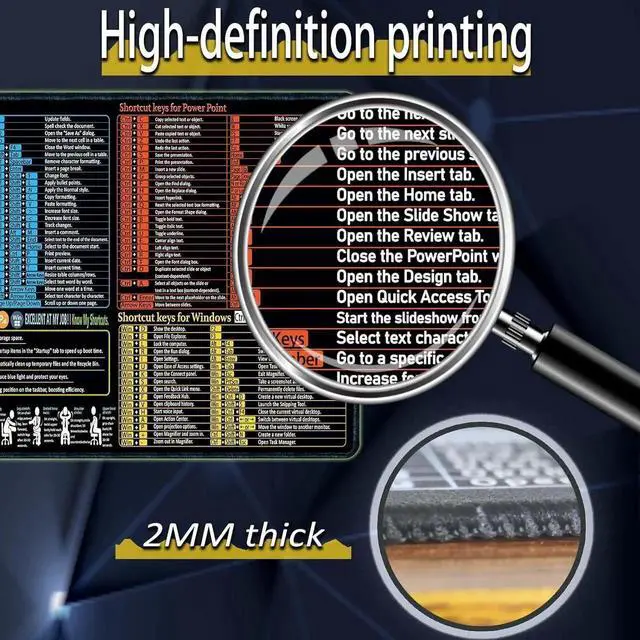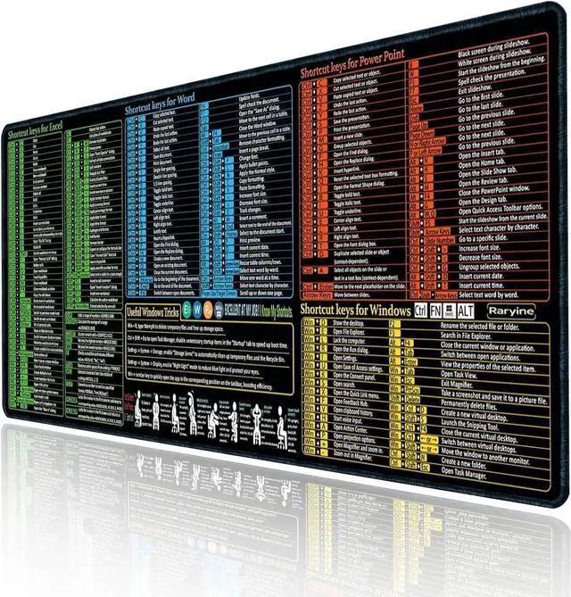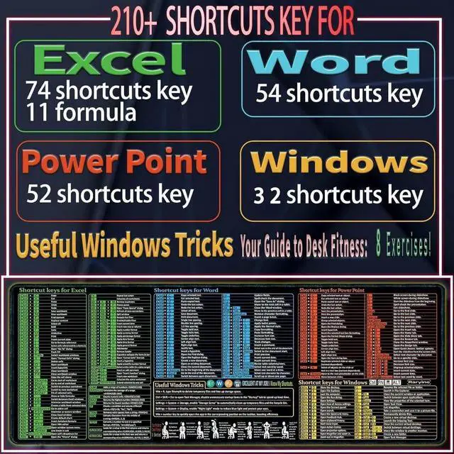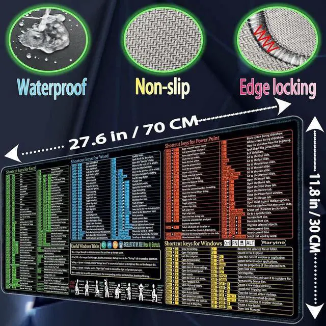 LARGE AND PRACTICAL SIZE: Measuring 27.6 x 11.8 inches (700x300x2mm) this Excel mouse pad serves as both a mouse pad and desk mat offering generous space for your computer keyboard and mouse. Ideal for use in the office or at home. CLEARLY ORGANIZED AND EASY TO USE: Excel Word PowerPoint and Windows shortcut keys are grouped and organized for easy reference making this desk pad a helpful tool for both beginners and experienced users.