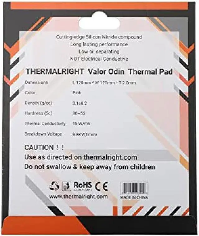 Thermalright VALOR ODIN THERMAL PAD 120 x 120mm Thickness 2.0mm High Thermal Conductivity Thermal Pad Laptop/Game Console/Smartphone Thermal Conductivity 15W/mk Japanese Product