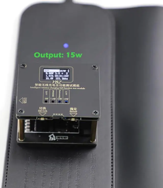 Keyboard Pad: this keyboard mat Built-in Output 5V-1A, 9V- 1.1 9V- 1.66, 15W. Efficiency reaches 75%-85%. Intelligent identification 5W/ 7.5W /10W/15W charging. Sensing distance=8mm so dont take off the phone case when charging.