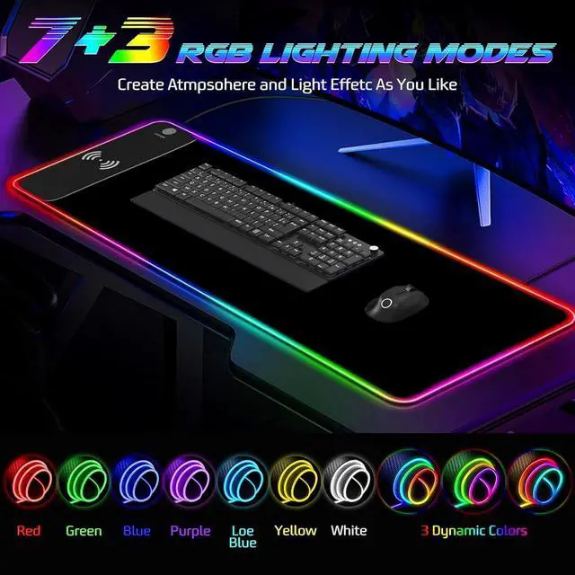 10 Lighting ModesDesk pad mat have super luminous customized Various lighting modes, including static light modes and dynamic modes, which offers a distinctive atmosphere when playing games or working. Bright, colorful RGB lighting along the entire edge