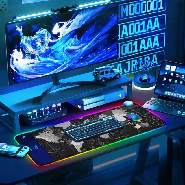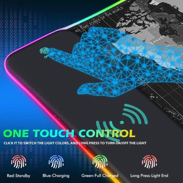 10 RGB LED Lighting Modes Light Up Your DeskRGB mouse pad with wireless charging made of super luminous, which customizes 10 lighting modes, including colorful, dynamic breathing lighting mode, 7 static monochrome lighting mode and lights off mode. providing a unique atmosphere when playing games or working. The memory function helps to remember the light mode selected when it was last turned on