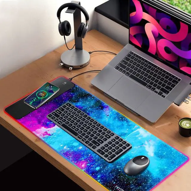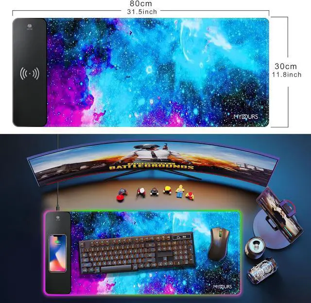 15W QI Wireless Charging Mouse Mat: The large mouse pad Built-in 15W wireless fast charging, as long as it meets the QI standard, it can also be charged wirelessly, such as devices that support wireless charging such as air pods.