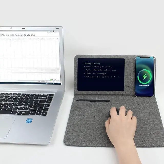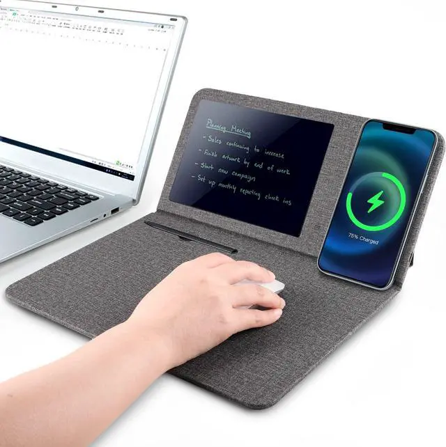 Design: Wireless Charger and Mouse Pad with 8-inch Writing Pad, Stylus Pen and Phone Holder.