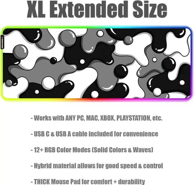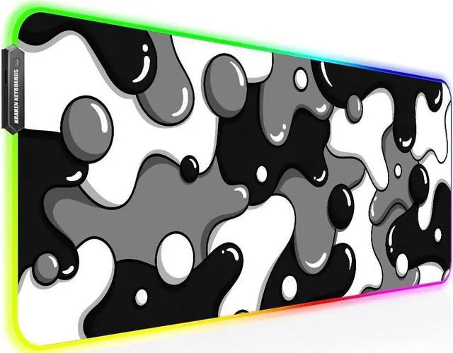 Kraken Keyboards DRIP XL Black & White Gaming RGB Mouse Pad - Professional Artisan Mouse Pad - Black & White Gaming RGB Desk Mat - 31" x 12" Thick Extended XXL Gaming Mouse Pad (Stealth)