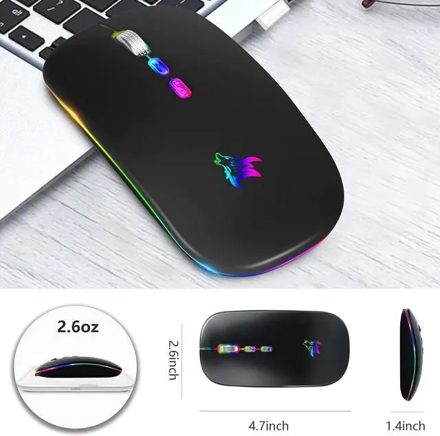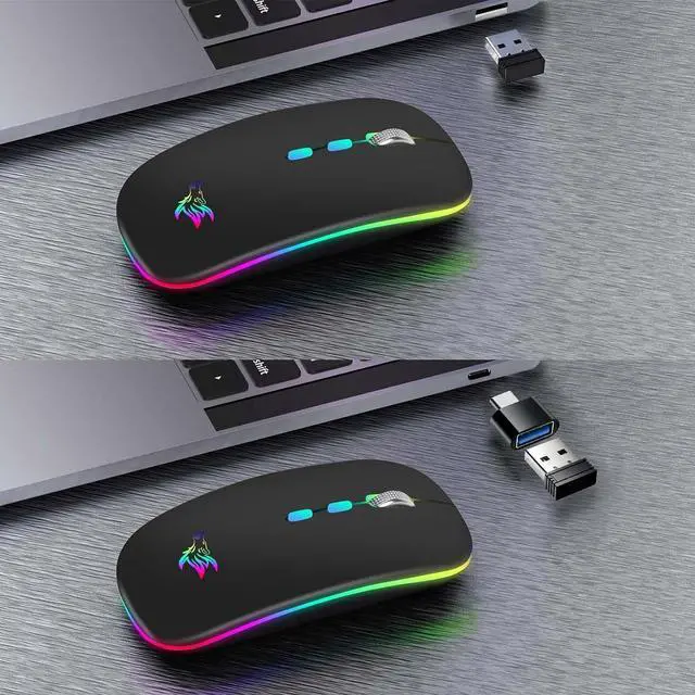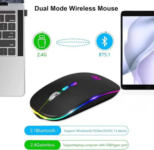 Led Wireless Mouse: This wireless mouse Bluetooth with lights can give you more fun during office time. You can choose use the 2.4G wireless mouse when the mouse botton switch is on the 2.4G mode, or connect your laptop's Bluetooth to use the Bluetooth mouse, easy to switch, suitable for any occasion.