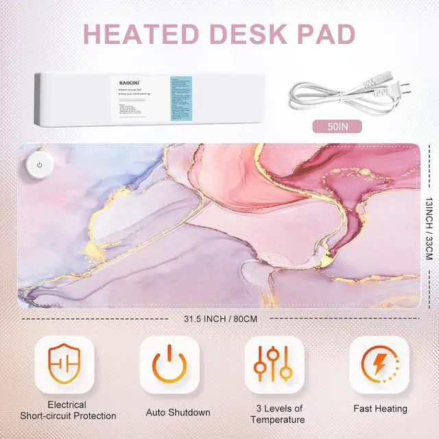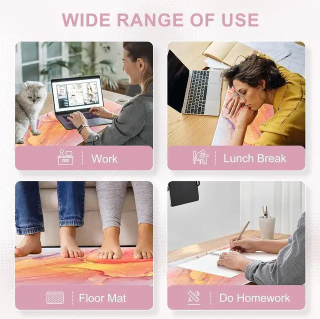 Heated Mouse Pad Size: Pink desks mats on top of desks ( 31.5 x 13 inch) is big enough to fit your mouse, gaming keyboard and other desk items while protecting your desk. Keep your desk clean and uncluttered. A great gift to your family or friend on Christmas, Thanksgiving Day, New Year, Halloween