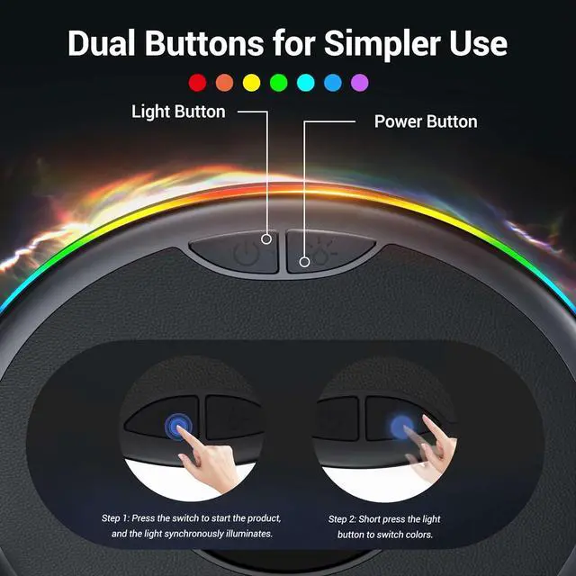 BREATHING LIGHT DESIGN: Equipped with a power button and a light button, this mouse jiggler allows you to switch between 7 light colors by short-pressing the light button after pressing the power button. You can also long-press the light button to turn off the lights.