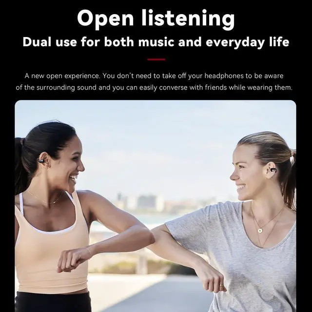 Clip-on DesignClip-on design, novel and fashionable appearance, beautiful and comfortable to wear, considering ergonomic design, very comfortable to wear, open design, also makes you safer when using earphones.