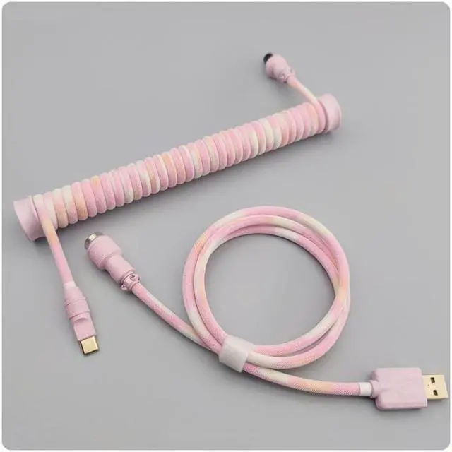 Coiled Keyboard Cable,Custom Coiled Type-C to USB A Cable,Double-Sleeved Wire with 2 Generation Metal Aviator Connector for Mechanical Gaming Keyboard - Pink