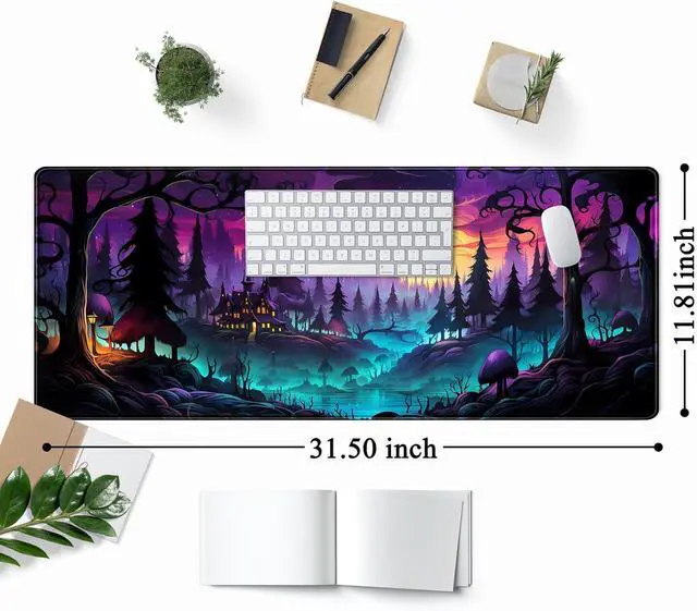 Mystic Forest Desk Mat Purple Cute Large Mouse Pad Extended Gaming Mousepad XL Big Aesthetic Desk Pad Cool Anime Keyboard Mat Laptop Desktop Mouse Mat 31.5''X11.8''