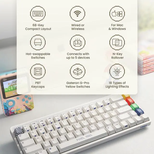 If you're a fan of mechanical keyboards, the MIIIW K19.1 is definitely worth checking out. MIIIW K19.1 Mechanical Keyboard not only delivers a comfortable typing experience but also offers durable and reliable performance. It comes with 68 keys that are fully backlit and customizable to your liking. Plus, it has a high-speed USB cable for a lag-free connection. Whether you're gaming or just need an efficient keyboard for work, the MIIIW K19.1 Mechanical Keyboard is a great choice!SpecificationsNumber of keys: 68 keysConnection mode: Wired connection, 2.4G connection, Bluetooth connectionBluetooth name: MIIIWART-Z680Wireless version: 2.4G, BT3.0+BLE5.0Operating system: Win, Mac, iOS, AndroidWireless distance: 10 meters (in an unobstructed open environment)Battery capacity: 4000mAh, 3.7VBattery type: Li-ion polymer batteryCharging time: about 3 hoursCharging port: Type-CCase material: ABS shell, keycap PBTKeyboard weight: 735gOverall size: 316x118x38.7mm