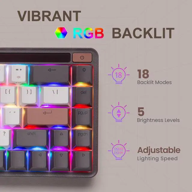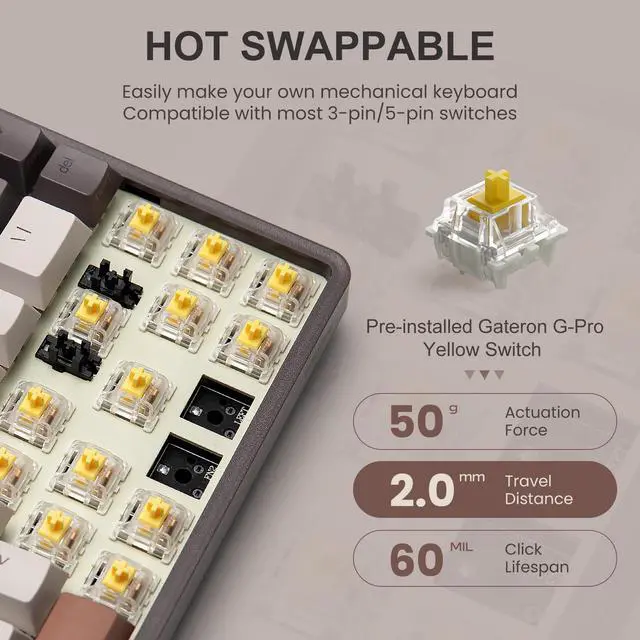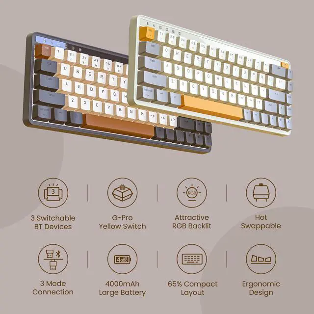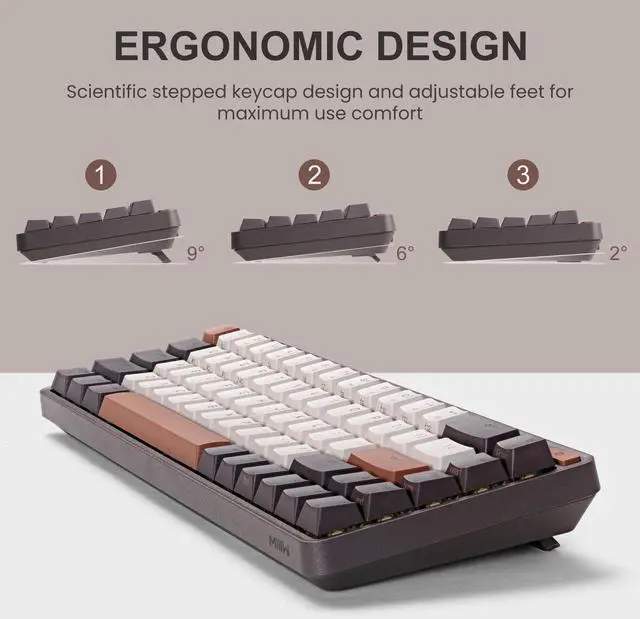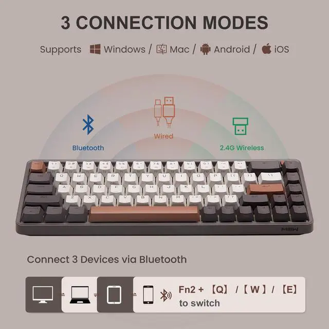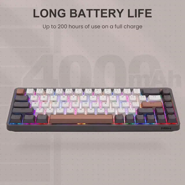 The MIIIW Z680 68 Keys Mechanical Keyboard offers surprisingly good build quality, provides an enjoyable typing experience, and has an attractive retro-style design. The 68 keys 65% layout is not only compact enough to save a lot of desk space but also feature-rich to meet your needs during work or gaming. It has 3 connection modes and is compatible with Windows, Mac, Android, and iOS systems. Plus, this mechanical keyboard supports hot-swapping and is available with most switch options on the market, and you can easily try new switch types if youre curious.