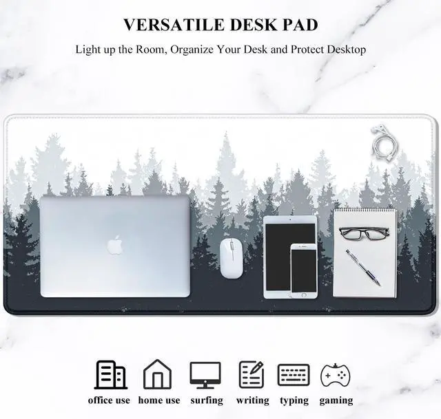 Soft and Non-slip Rubber BaseThe soft and dense non-skid nature rubber base keeps the pad firmly in place it can effectively prevent the mouse and keyboard from sliding and moving for stable operation. Works well on all types of desks including wood glass leather metal marble desk and more. While sturdy the entended desk pad is flexible enough to be rolled up for easy transport to move around so you can work or game wherever you want. High Qulity Workmanship and MaterialsThe loptop pad has delicate edges it is individually hand crafted with high quality warkmanship so not fray deformation and degumming in prolonged use relax to use.