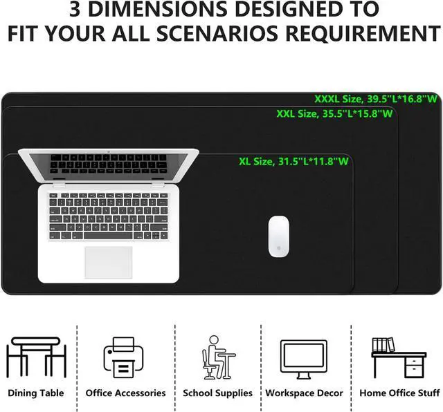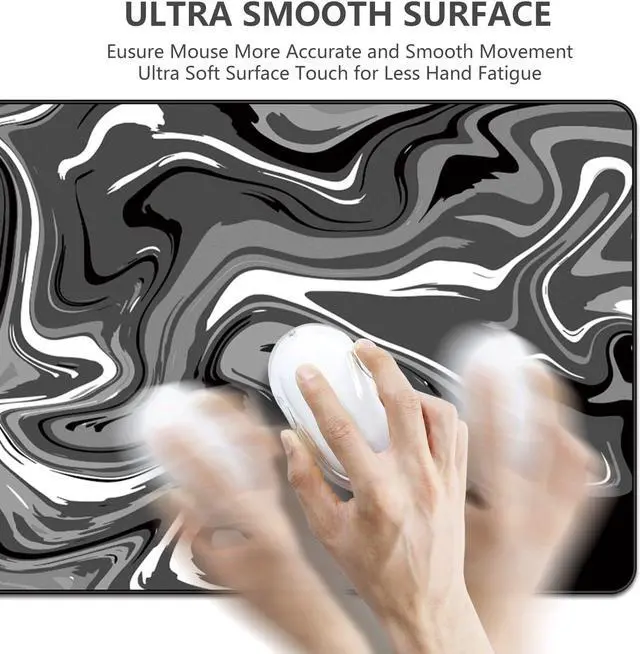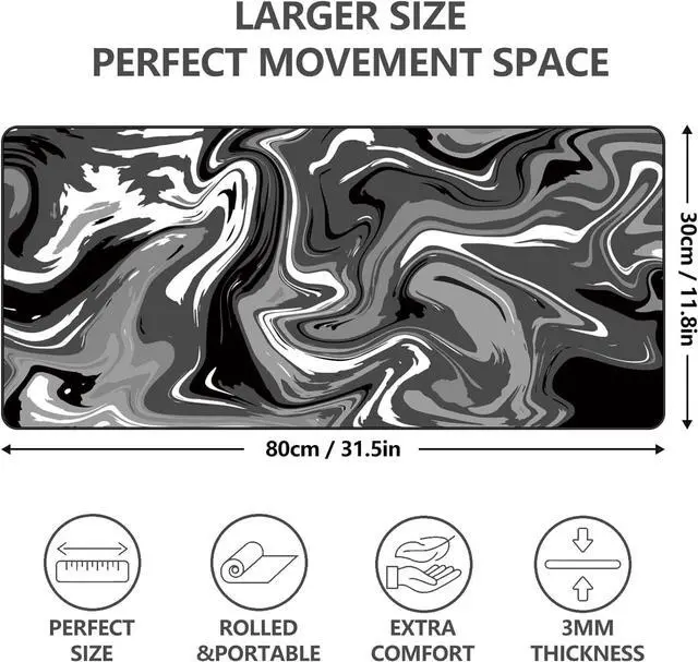 Extended Large SizeOur keyboard and mouse pad has 3 Sizes. L Size- 31.5L * 11.8W (80cm*30cm) XL- 35.5L * 15.8W (90cm*40cm) XXL Size- 39.5L * 16.8W (100cm*43cm). This desk pad measures measures 31.5L * 11.8W with 3mm thickness offers a wide area to have your laptop mouse and keyboard. You can freely move your mouse without any interruption and don't have to continually adjust the mat as you do with traditional mousepads. Ultra Smooth SurfaceThis liquid pattern desk mat adopts superfine Lycra cloth on cover making your mice glide on its surface effortlessly which can provide optimum speed and accurate control during your working or gaming.