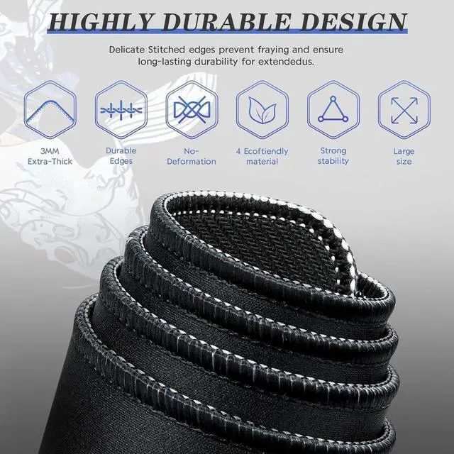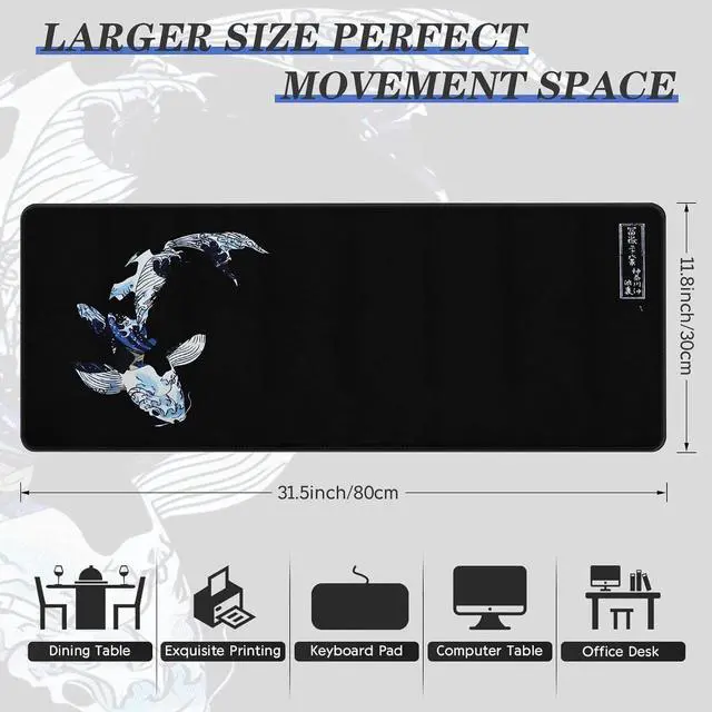 Extended Size The Japanese Mouse Pad Is Large Enough 11.8 ''X 31.5 '' ( 800mm X 300mm X 3mm) Will Fit Your Desktop Perfectly And Provide Perfect Movement Space Offers Plenty Of Room For Gaming Or Office Works All While Protecting Your Desk. Superior Control Surface Features Smooth Low Friction High Thread Count Woven Silk-Processed Lycra Surface. The Ultra-Smooth And Breathable Fabric Ensures Fast Movement While Maintaining Excellent Precision Consistent & Accurate Mouse Control. ETZ Mouse Pad Is Perfect Choice For Studying Working Gaming. Stable Non-Slip Rubber BaseThe Dense Anti-Skid Nature Rubber Base Offers Extra Heavy Grid To Ensure The Mouse Mat Stay Securely In Place.