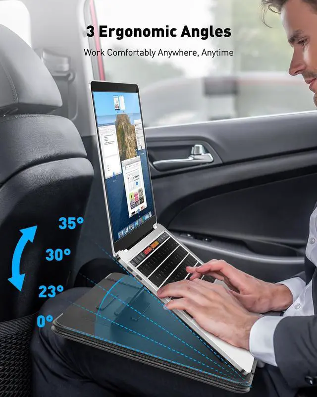 Three Ergonomic Angles: Choose from 23°, 30°, or 35° for optimal viewing and typing comfort on this adjustable lap desk.