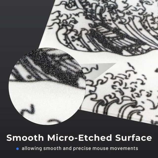 The surface of this glass mouse pad features smooth micro-etched texture is optimized for laser and optical mice, for fast and precise mouse movements, no frame drop, is faster, helping for mouse accurate positioning and bringing you smoother handle.