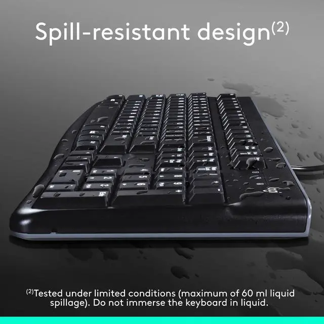 *Tested under limited conditions (maximum of 60 ml liquid spillage). Do not immerse the keyboard in liquid.