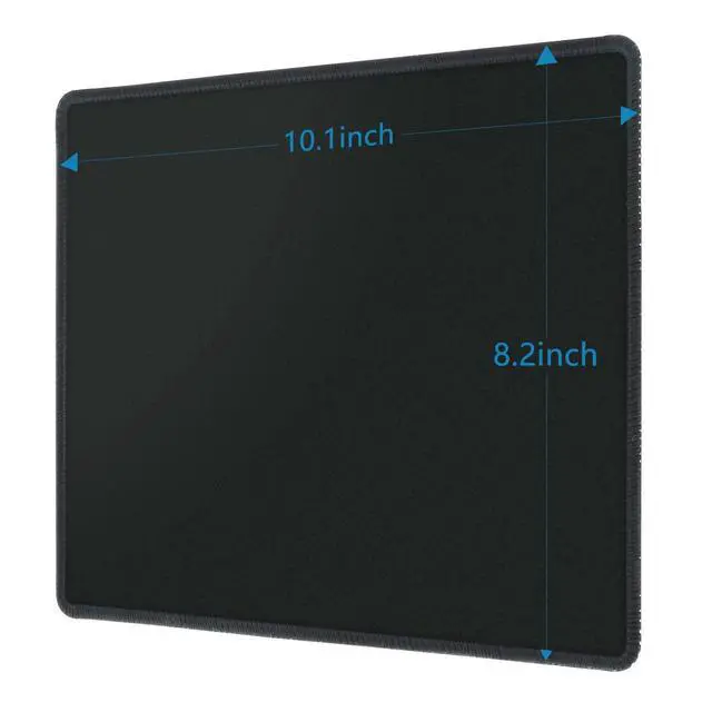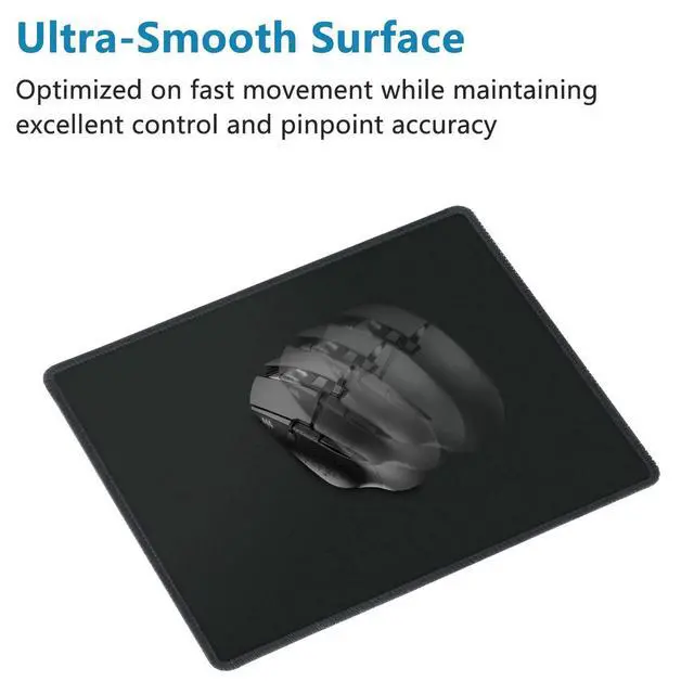 Non-Slip Rubber Base Mouse PadThe bottom of the gaming mouse pad is made of high-quality natural rubber, which is 100% natural friendly material, odorless and healthy and environmentally. Designed with dense texture rubber that firmly grasps your desktop, and you don't need to worry about any annoying mousepad movement. Ultra-smooth SurfaceMouse Pads measure 10.1 x 8.2 inches, and mouse pad features a smooth, comfortable cloth surface with a fine weave for effortless, silent gliding on any surface whether in the office or at home. it is optimized for fast movement while maintaining excellent speed and control, great for daily work or gaming Durable Stitched EdgesThis black mouse pad has delicate edges which can prevent wear, deformation and degumming in prolonged use. And the edge even the seams at the edge are flat, comfortable for your wrists and hands. Anti-slip Rubber BaseMousepad dense anti-slip rubber base provides heavy grip preventing sliding or movement of mouse pads, available for any flat, hard, tabletop surface. Low-friction top-material for accurate tracking the movement of cursor. Waterproof and Fade Prevent Easy-cleaning surface is wipe off any dirt or debris. No more worry about accident drinks spills and food residue.