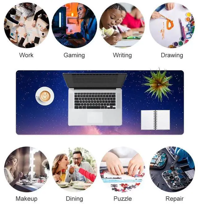 The size of 80×40 cm (31.5×15.7 inches) is perfect for anyone who needs the maximum amount of mouse space. This full desk mousepad can protect your desktop from scratches and damage.