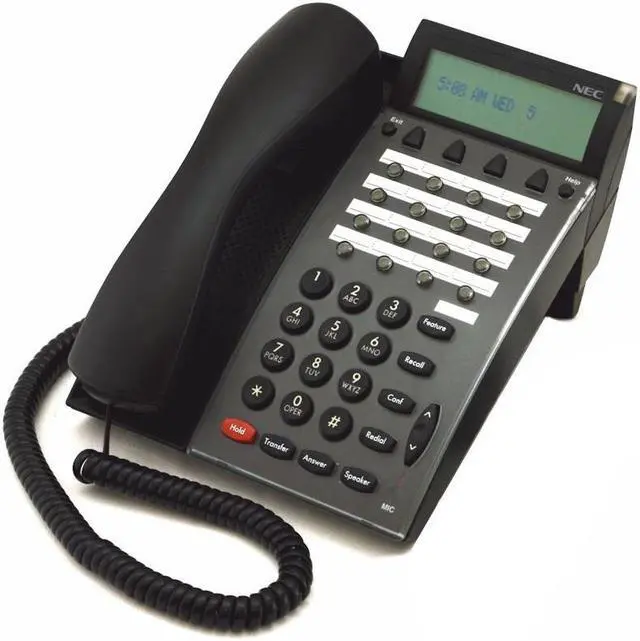 The NEC DTU-16D-2 feature phone is a display phone with 16 programmable buttons for features or lines. 3 line x 24 character display 16 programmable line/feature keys with LED indicator 8 fixed feature keys for ease of operation 4 soft keys Message waiting lamp Hands-free speakerphone Built-in headset jack Volume/contrast control
