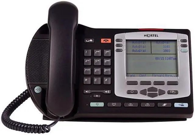 The i2004 Internet Telephone is a standards-based, Internet Protocol, desktop telephone that connects directly to the Local Area Network (LAN) via RJ-45 connector. Integrated LCD Display Four programmable feature keys Six line/memory buttons Four-way navigation cluster for LCD content Integrated high-quality speakerphone Integrated headset jack Visual ringing alert/message waiting LED Desk or wall mountable Fixed feature keys include Hold, Goodbye, Mute, Volume Up/Down, Services, Expand-to-PC, Inbox and Outbox, Headset, Handsfree Field upgradeable firmware through TFTP Supports dynamic IP addressing (DHCP) Single integrated auto-sensing Ethernet port 10/100Mbps The Nortel i2004 is compatible with BCM and Succession The i2004 requires power to function.