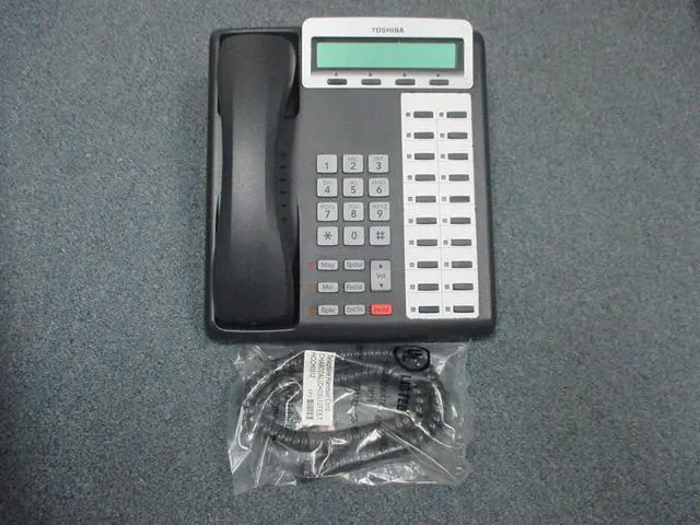 Fixed Feature Keys: Message, Mic, Speaker, Conference/Transfer, Redial, Speed Dial, and Hold INCLUDES Telephone Handset Cord Line Cord Desi Overlays COMPATIBILITY Toshiba Strata DK Series: DK14, DK16, DK40, DK40i, DK280, DK424, DK424i
