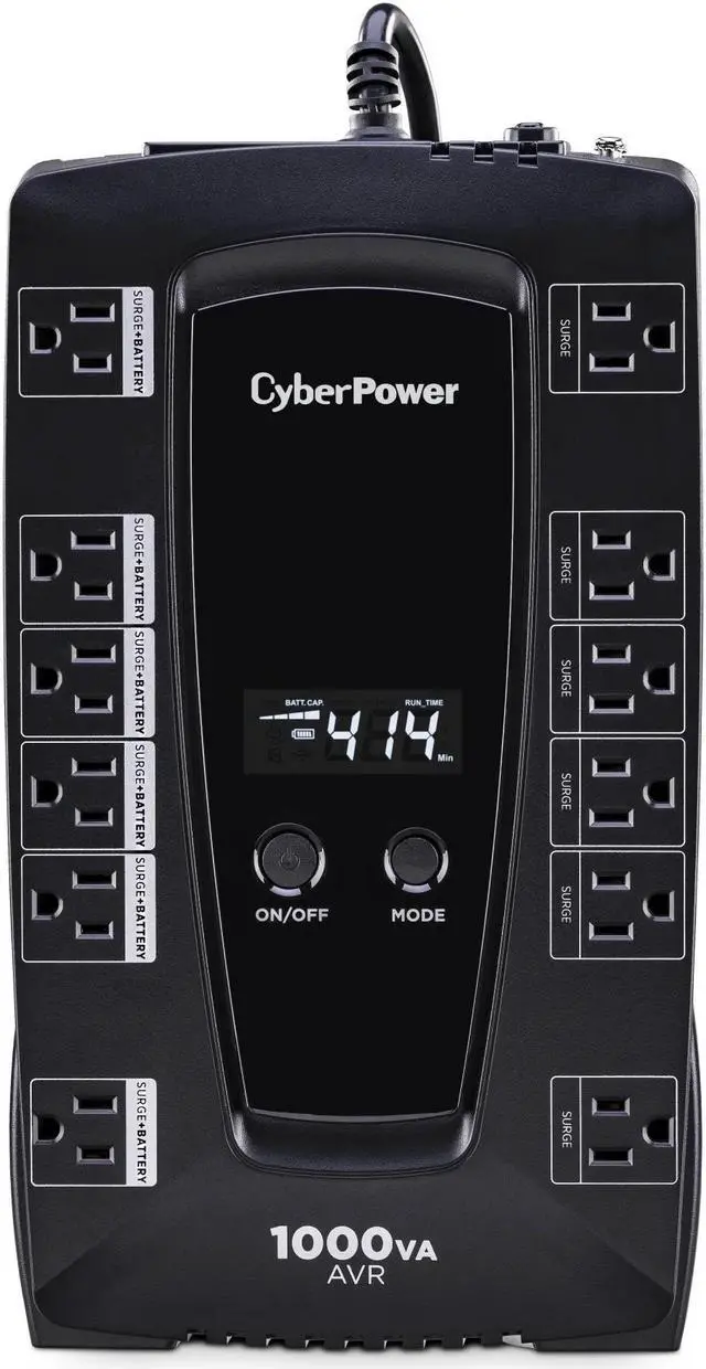 The CyberPower SE450G Battery Backup/ UPS (uninterruptible power supply) system safeguards desktop computers, networking devices, and home entertainment systems by providing battery power during power interruptions and surge protection. Data line protection for phone/network (RJ11) is included. The SE450G has a capacity of 450VA/260 Watts and eight outlets (four widely spaced) to accommodate transformer-based plugs.
