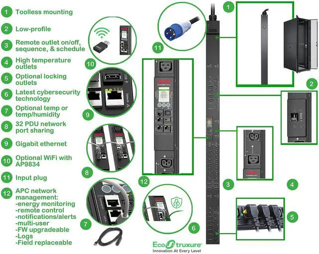 APC NetShelter Switched Rack PDU 9K series 0U 17.3kW 208V 20 C13/C15 12 C19/C21 outlets