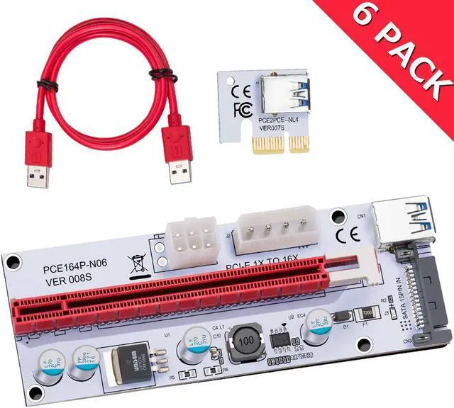 6-Pack Corn Electronics Updated Ver008S Mining Dedicated Riser Card PCI-E Express Cable 1x to 16x Ethereum ETH Mining 60cm USB 3.0 Cable 4 Solid Capacitors LED Indicator and Fuse Included