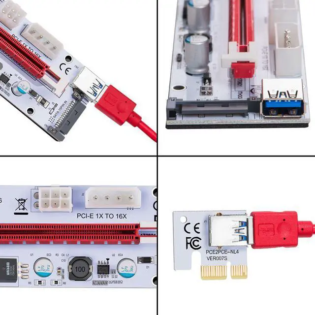 5. Perfect to set up Ethereum mining rigs 6. 4 Holes on the riser card to fasten. 7. LED indicator and fuse are used on the board.