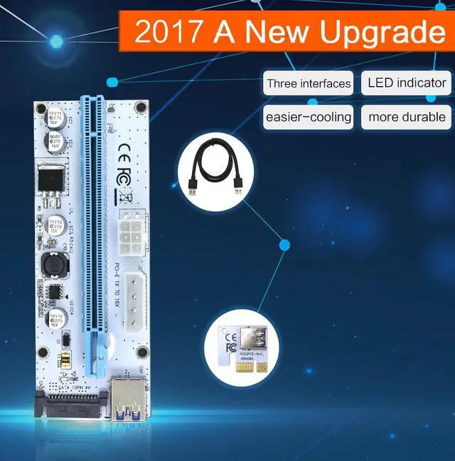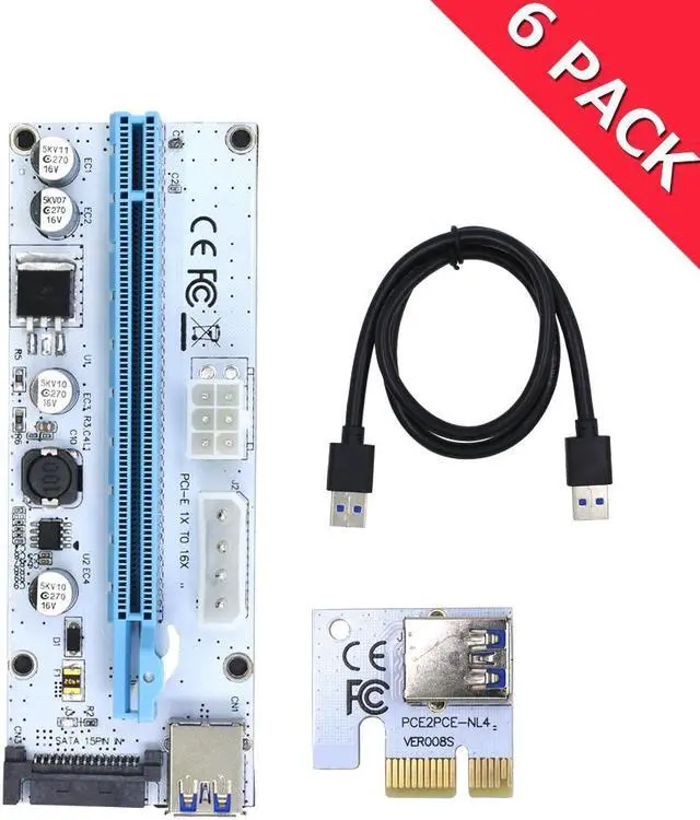 Package includes: 6x PCI-E 16X riser board 6x PCI-E 1X adapter card 6x 60cm USB 3.0 riser cable