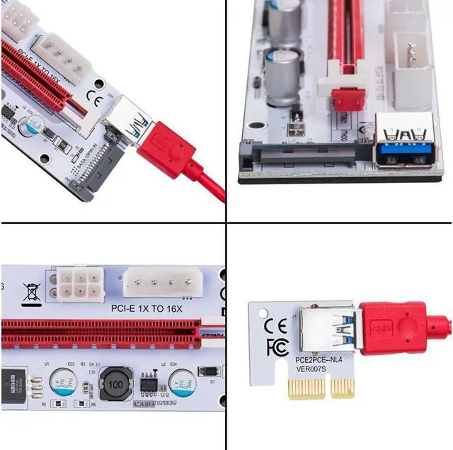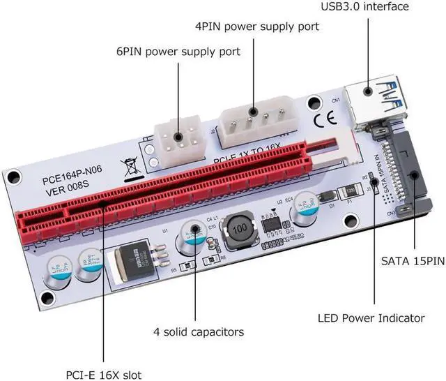 5. Perfect to set up Ethereum mining rigs 6. 4 Holes on the riser card to fasten. 7. LED indicator and fuse are used on the board.