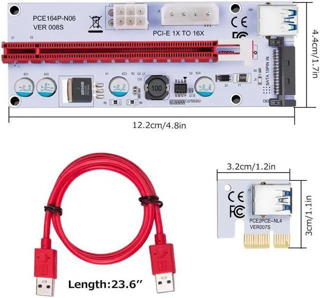 Package includes: 12x PCI-E 16X riser board 12x PCI-E 1X adapter card 12x 60cm USB 3.0 riser cable