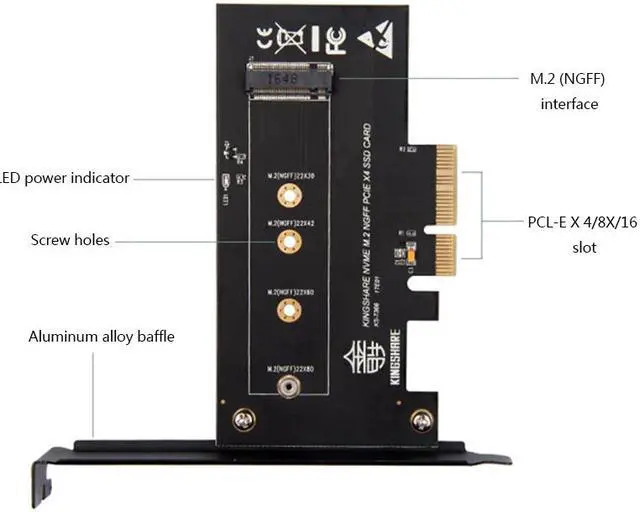 PCI-Express PCI-E 3.0 X4 to M.2 NGFF M Key Slot Converter Adapter Card M2 Nvme PCIE SSD Riser Card for Desktop Support 223