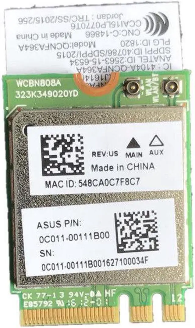 2 Antenna connector port: MHF4 abgn+ac, 2x 2:2 Support for 802.11 a/b/g/n/ac Max wireless throughput of 867 Mbps Supports 20/40 MHz channel bandwidth at 2.4 GHz + 20/40/80 MHz at 5 GHz Bluetooth 4.1