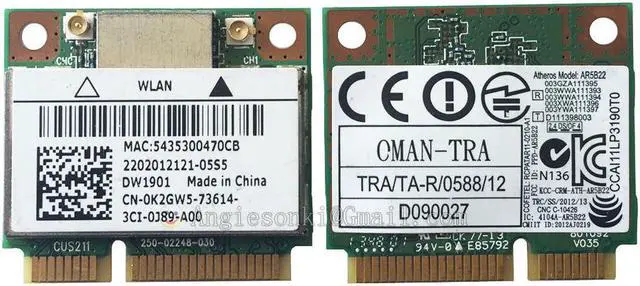 ATHEROS AR5B22 AR9462 DUAL BAND N + BLUETOOTH BT WIRELESS WIFI CARD DW1901 K2GW5