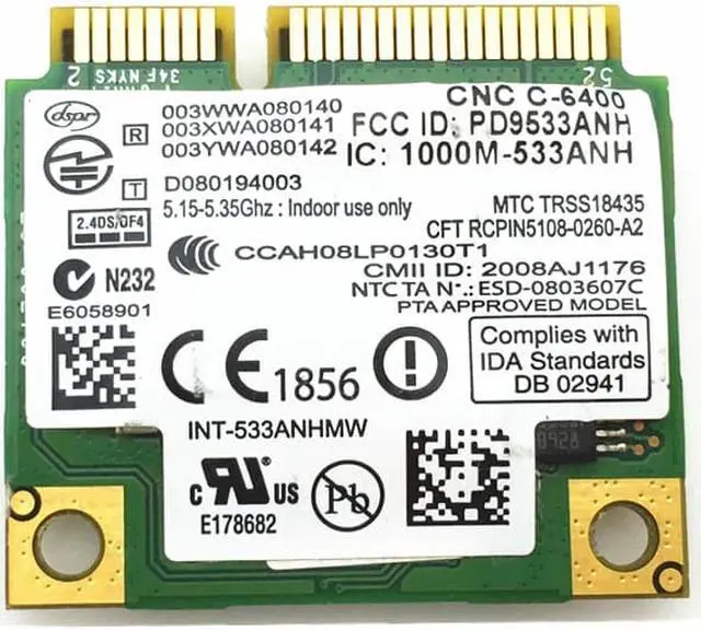 IEEE 802.11 a/b/g/Draft-N1 Dual Band: 2.4G /5G Deliver up to 450 Mbps Compatible with: The chipset of the mainboard are INTEL 940/943/945/960/965/975/GM45/GM47/ PM45 laptop. Not for IBM/lenovo Package Includes: 1 x Wirelss card Drive Not Includes!!