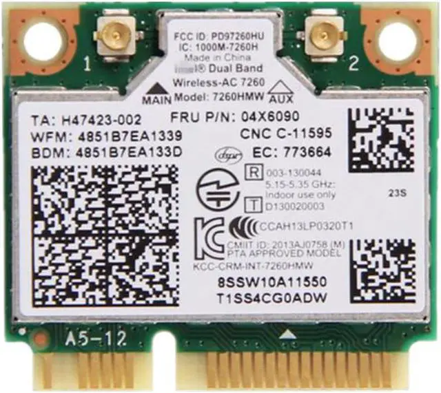 • Dual Band For IBM Thinkpad Intel Wireless-AC 7260 7260HMW 802.11ac Mini PCI-E Wifi + Bluetooth 4.0 Wlan Card FRU 04X6090