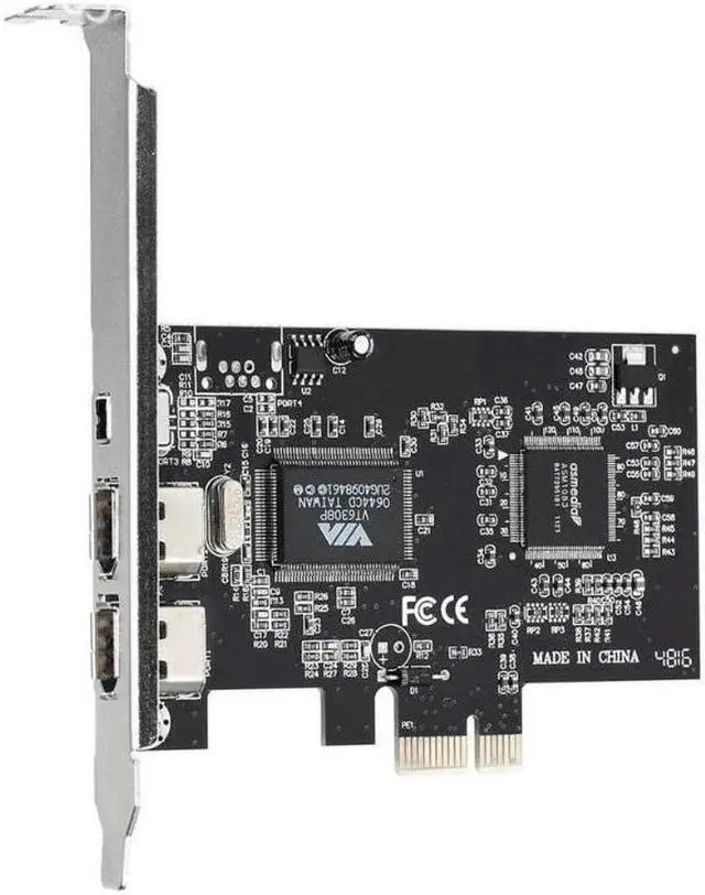 Desktop PC Features: 1-Lane (x1) PCI-Express with transfer rate 2.5G b/s full duplex channel. 3 external ports (2*6 pins + 1*4 pins). Compliant with PCI Express version 1.0 a. Support 400/200/100Mbps data transmission rate. Compliant with IEEE 1394 OpenHCI specifications v 1.0 and v 1.1. Support IEEE P1394B 1.33 + version. Comply high performance serial bus IEEE 1394-1995. Comply with the IEEE 1394a-2000 standard. Fully backward compatible with the 1394a specification.