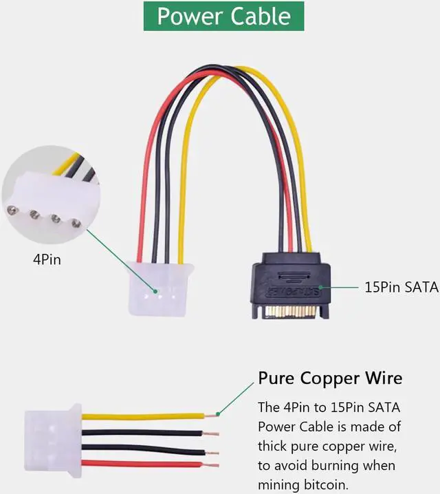 With SATA 15pin Male to 4pin power cable, strengthen power supply, so that graphics power from the motherboard independent, so multi-card reduce motherboard burden.