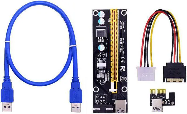 PCI-E 1x to 16x Mining Machine Enhanced Extender Riser Adapter With Power Cable.